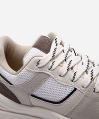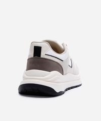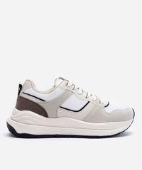 • Cabedal confeccionado em material sintético e têxtil, com recortes que criam um visual dinâmico.