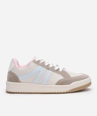 Tênis desenvolvido em material sintético resistente. O modelo tem bico redondo e cano curto, cabedal com recortes contrastantes, cadarço duplo para ajuste e acabamento pespontado. Possui forro interno com leve enchimento, palmilha macia com inscrição de marca e sola texturizada que auxilia no caminhar.