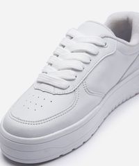 Tênis casual feminino desenvolvido em material sintético resistente. O modelo tem bico redondo e cano curto, cabedal com recortes pespontados, micro furos e ajuste por cadarço. Possui forro interno com leve enchimento, palmilha macia com inscrição de marca e sola texturizada que auxilia no caminhar.