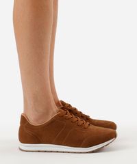 tênis casual feminino com recorte via uno marrom