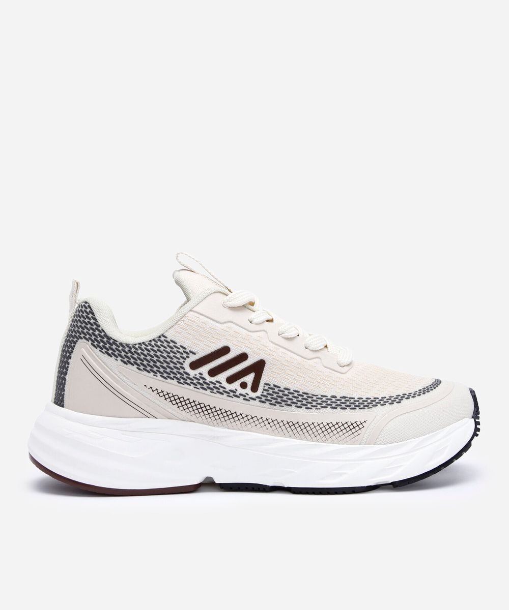 • Cabedal confeccionado em material têxtil com recortes sintéticos, que proporciona ventilação e suporte aos pés.