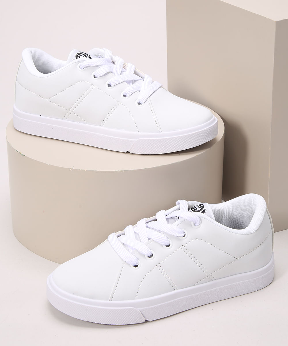 Este tênis branco é extremamente versátil e combina com tudo! Fica ótimo com calças jeans, bermudas de sarja e shorts para um look casual e despojado. Para as meninas, também pode ser usado com vestidos e saias, criando uma produção moderna e confortável. É o calçado infantil ideal para compor desde o uniforme da escola até o visual do fim de semana.