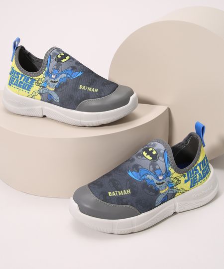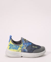 Tênis infantil desenvolvido em material sintético. A peça tem estampa temática do personagem Batman. Modelo knit, é fácil de calçar. Possui recorte na biqueira e no calcanhar. Entressola e sola emborrachadas.
