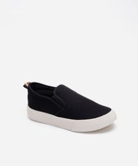 Tênis infantil slip on confeccionado em material resistente. Possui bico arredondado, detalhe posterior com gorgurão colorido, forro interno e enchimento, proporcionando conforto, sola emborrachada, palmilha macia.
