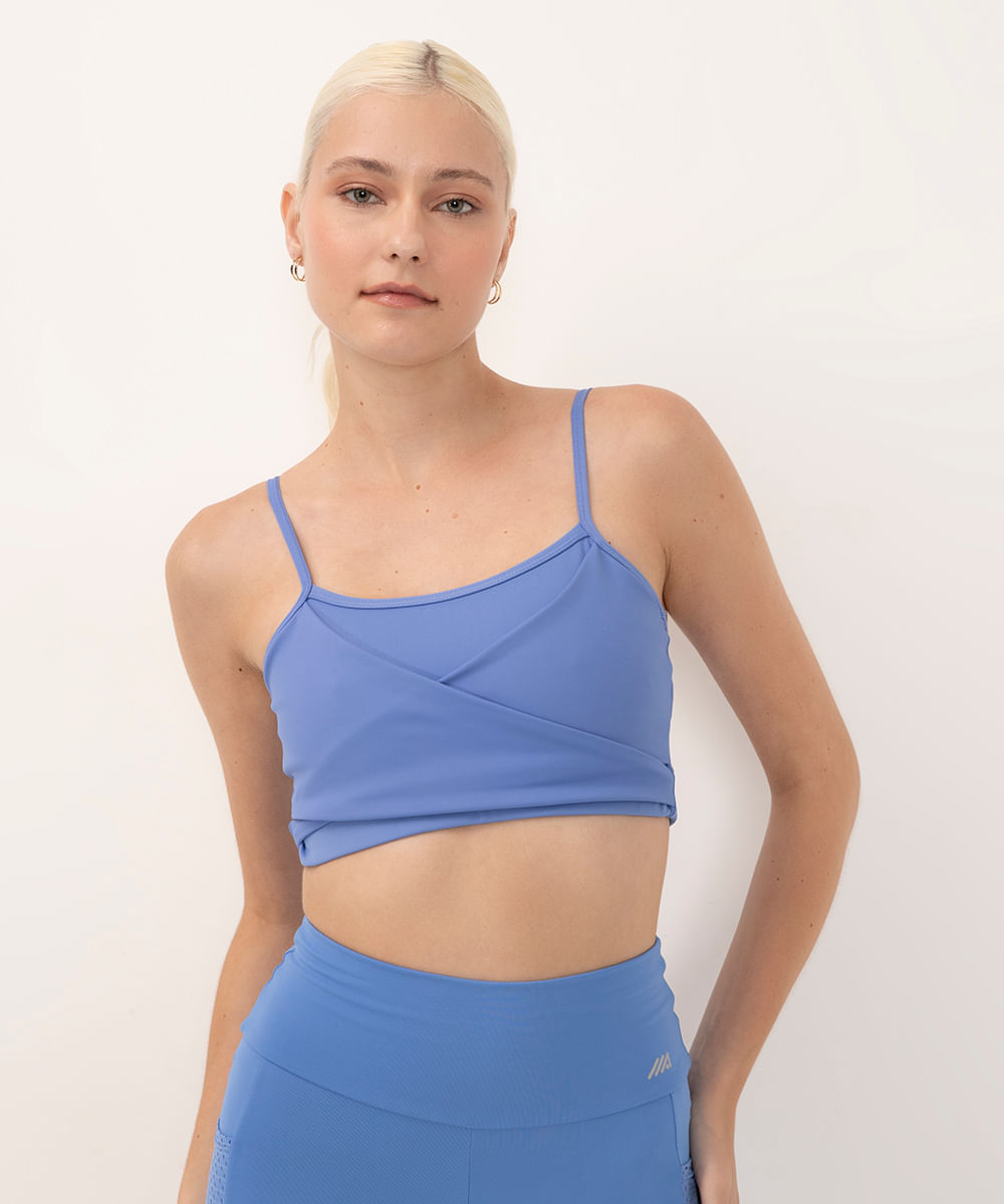 • Design com detalhe de transpasse frontal, que adiciona um toque de estilo e modernidade ao look fitness.