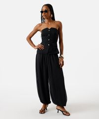Para um visual de trabalho moderno, combine este top corset com uma calça de alfaiataria de cintura alta e um blazer. Se a ocasião for um happy hour ou um jantar, troque a calça por uma saia midi ou um jeans de corte reto e adicione acessórios marcantes. Para um look mais despojado e fashionista, use-o com uma bermuda de couro e sandálias de salto.