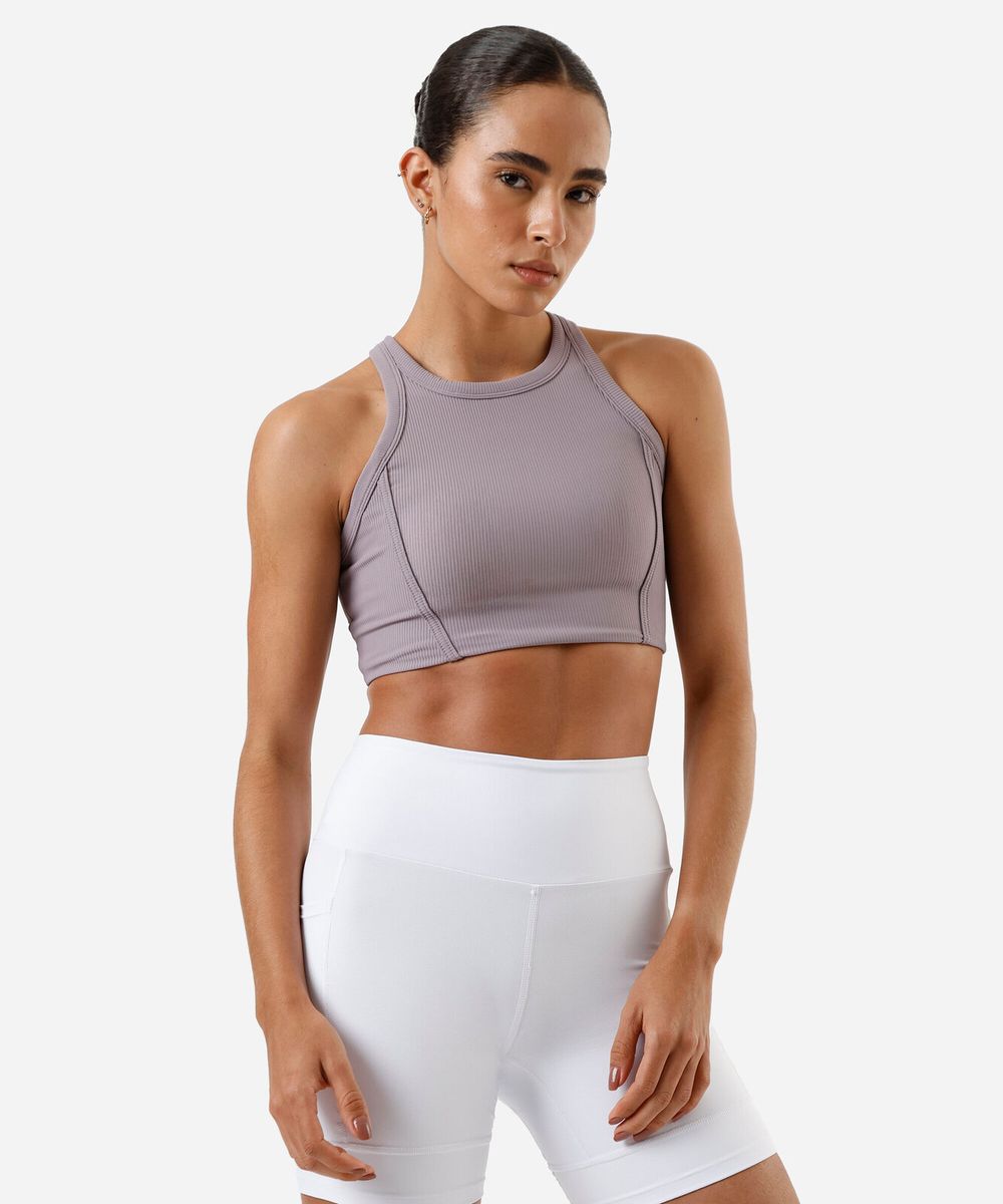 top cropped feminino canelado - roxo médio