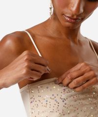 Economia de R$ 30,00Top faixa de carnaval feminino confeccionado em malha com bordado de paetês. A peça tem modelagem ajustada ao corpo e comprimento cropped. Possui decote quadrado e alças finas ajustáveis e removíveis.