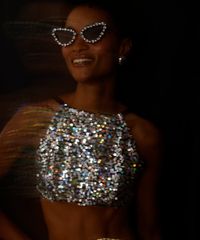 top feminino com paetê halterneck preto