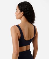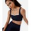 Top feminino confeccionado em malha de poliamida. A peça tem modelagem reta e caimento confortavelmente ajustado ao corpo. O modelo tem decote coração com viés contrastante, alças médias fixas e forro em malha.