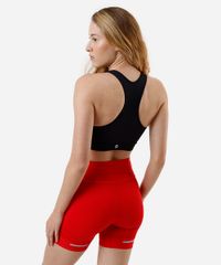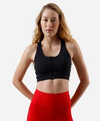 Top feminino confeccionado em malha de poliamida. A peça tem modelagem ajustada, ao corpo com decote redondo na parte frontal e nadador na parte posterior. Possui elástico embutido na barra para maior sustentação e fechamento por zíper frontal.