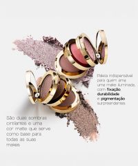 Idealizada por Nádia Tambasco, traz tons versáteis e atuais, perfeitos para criar diferentes looks. Possui 2 tons cintilantes, 1 tom matte, com alta pigmentação e fixação.