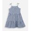 Vestido infantil confeccionado em tecido plano de algodão com estampa listrada. A peça tem modelagem evasê, caimento rodado e solto ao corpo com recortes horizontais que formam franzidos. O modelo tem decote quadrado e alças finas com laços. Detalhe de acabamento pespontado na barra.