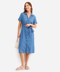 vestido chemise feminino jeans com faixa azul