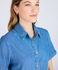Este vestido chemise jeans é a peça ideal para quem busca unir conforto e estilo em um só look. Com um design que combina a atemporalidade da camisa com a feminilidade do vestido, ele oferece versatilidade para diversas ocasiões. Seu tecido leve proporciona um caimento fluido e agradável ao corpo, tornando-o um item indispensável no guarda-roupa feminino.