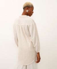 Use-a fechada como um vestido chemise sobre seu traje de banho para um look elegante e prático após um mergulho. Para uma proposta mais urbana e despojada, experimente usá-la aberta, como uma camisa larga feminina, combinada com shorts e um top, criando um visual perfeito para um passeio à beira-mar.