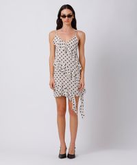 vestido curto alça fina feminino com babados poá texturizado mindset off white