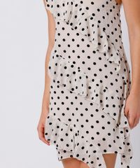 Este vestido curto combina o charme atemporal da estampa poá com um design moderno e cheio de movimento. Perfeito para quem busca uma peça feminina e estilosa, ele se destaca pelos babados que adicionam um toque romântico e sofisticado. Confeccionado em tecido plano leve, oferece um caimento fluido e confortável, ideal para diversas ocasiões.