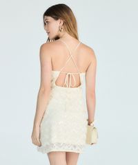 • Decote V e alças finas que se cruzam e permitem ajuste por amarração nas costas, adicionando um toque de charme.