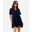 Vestido feminino confeccionado em viscose com linho. Possui modelagem evasê, caimento solto e fluido, comprimento curto, saia com detalhes em marias, gola clássica, decote V, vista com 3 botões, recortes decorativos e detalhes com entremeios em crochê.