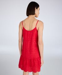 Vestido feminino confeccionado em malha de algodão com toque leve e macio. A peça possui modelagem reta com marias e caimento levemente solto ao corpo, decote V frontal e em U posterior, alças finas com ajuste, padronagem em arabesco com detalhes vazados e com textura, pregas no recorte, botões frontais e acabamento simples.