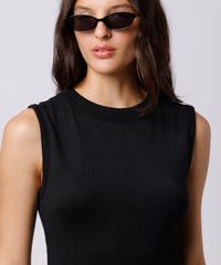 Vestido curto feminino confeccionado em tricot leve. A peça tem modelagem acinturada e caimento ajustado ao corpo. O modelo tem decote redondo e alças largas.