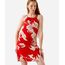 vestido curto feminino de viscose folhagens vermelho