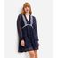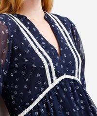 • Decote em V com aplicação de renda contrastante, adicionando um charme delicado à peça.