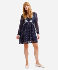 Para um look casual e romântico, combine este vestido floral com sapatilhas ou rasteirinhas. Acessórios delicados, como brincos pequenos e uma bolsa transversal, completam a produção com leveza. Se a ocasião pede um visual mais elaborado, aposte em sandálias de salto e uma clutch. O detalhe da renda e as mangas bufantes já trazem sofisticação, permitindo que você brilhe em jantares ou eventos noturnos.