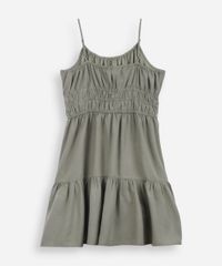 • Decote reto com detalhe franzido e alças finas com regulador para um ajuste perfeito.