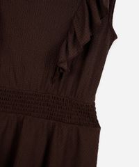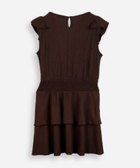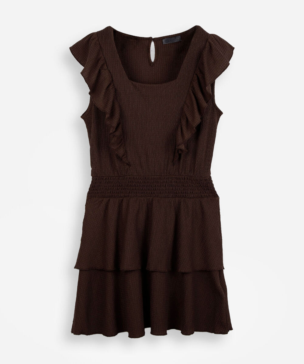 vestido curto juvenil texturizado com babados marrom