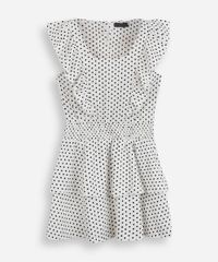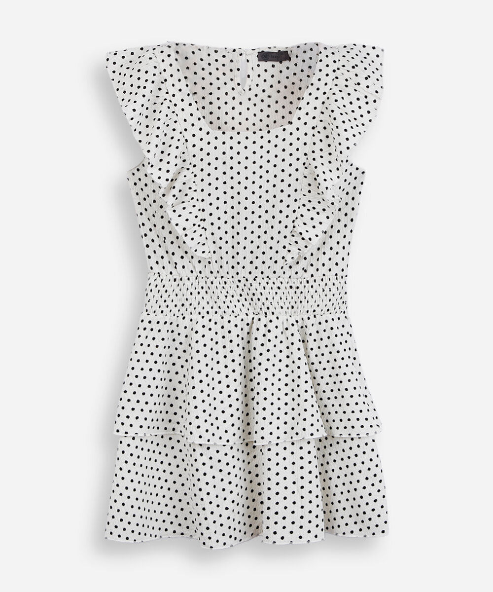 vestido curto juvenil texturizado com babados poá off white