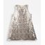 Vestido infantil confeccionado em tecido sintético revestido por paetês em formato de flor. Possui modelagem evasê, caimento levemente solto, gola redonda, design sem mangas com cavas levemente amplas, forro em tecido macio e fechamento posterior com botão.