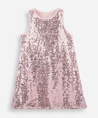 vestido evasê infantil de paetê rosa
