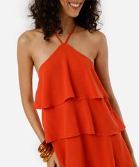 • Decote frente única com alças finas para amarração no pescoço, deixando as costas à mostra de forma sofisticada.