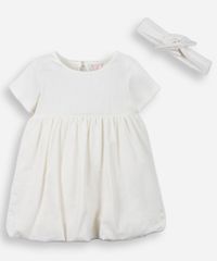 vestido infantil balonê com faixa de cabeça off white