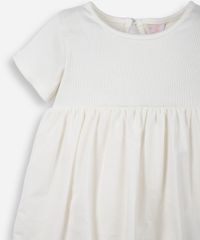 Vestido infantil confeccionado em malha de algodão canelada. A peça tem modelagem balonê, caimento solto e comprimento midi. Possui gola redonda com abotoamento, mangas curtas, detalhe em franzido e acabamento pespontado. Acompanha faixa de cabelo com detalhe de nó e fechamento por velcro. Composição: 96% Algodão 4% elastano Instruções de lavagem: - Lavagem manual - Proibido o alvejamento - Secagem mecânica à temperatura baixa - Secagem em varal - Passar à temperatura média - Limpeza com tetracloroetileno e solventes do simbolo F, processo suave - Não limpar à úmido