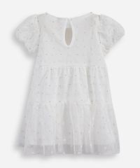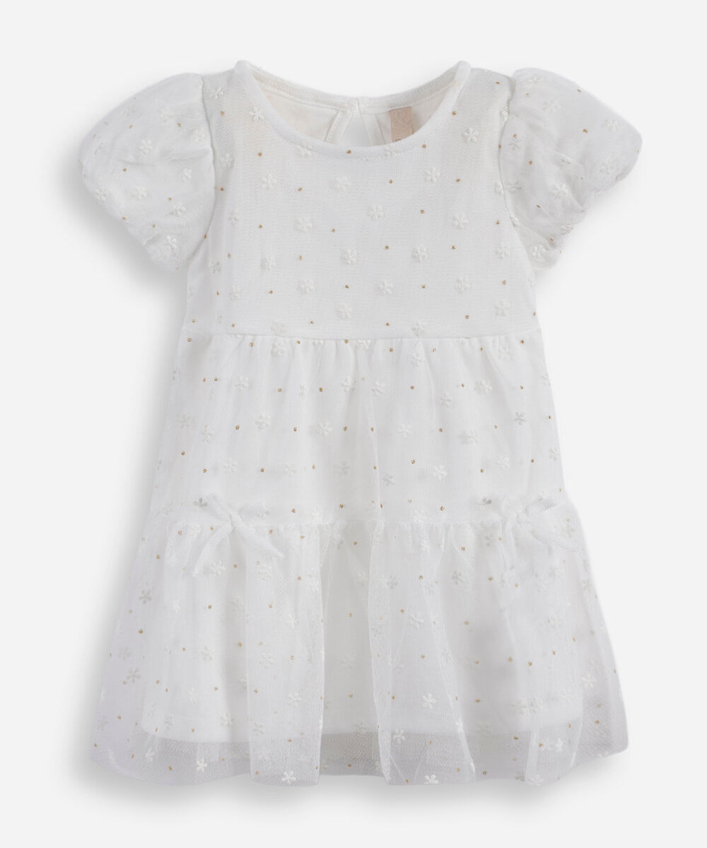 vestido infantil de tule com recortes e brilhos floral off white