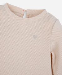 Vestido infantil confeccionada em veludo cotelê com bordado de coração. A peça tem modelagem evasê, caimento solto ao corpo com recorte inferior formando franzidos. O modelo tem tem decote redondo, abertura posterior por botão e mangas longas. Detalhe de acabamento pespontado na barra.