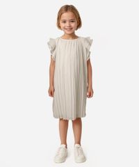Este vestido infantil é a escolha perfeita para momentos especiais, unindo delicadeza e conforto. Seu tecido leve e plissado com brilho sutil de glitter cria um movimento encantador, ideal para festas e celebrações. Uma peça que permite que as pequenas brinquem com liberdade e muito estilo.
