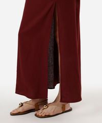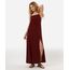 vestido longo alça fina feminino com linho e fenda vinho