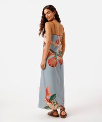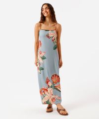 vestido longo alça fina feminino floral azul