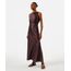 vestido longo feminino com franzido poá acetinado - marrom