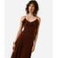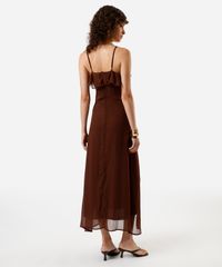 vestido midi alça fina feminino com babado marrom