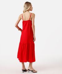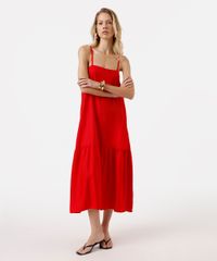 vestido midi alça fina feminino com viscose e recorte decote quadrado vermelho