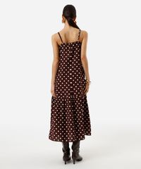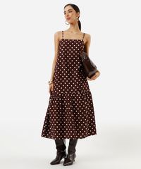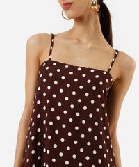 vestido midi alça fina feminino com viscose e recorte poá marrom