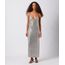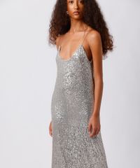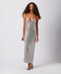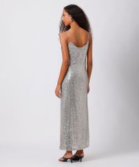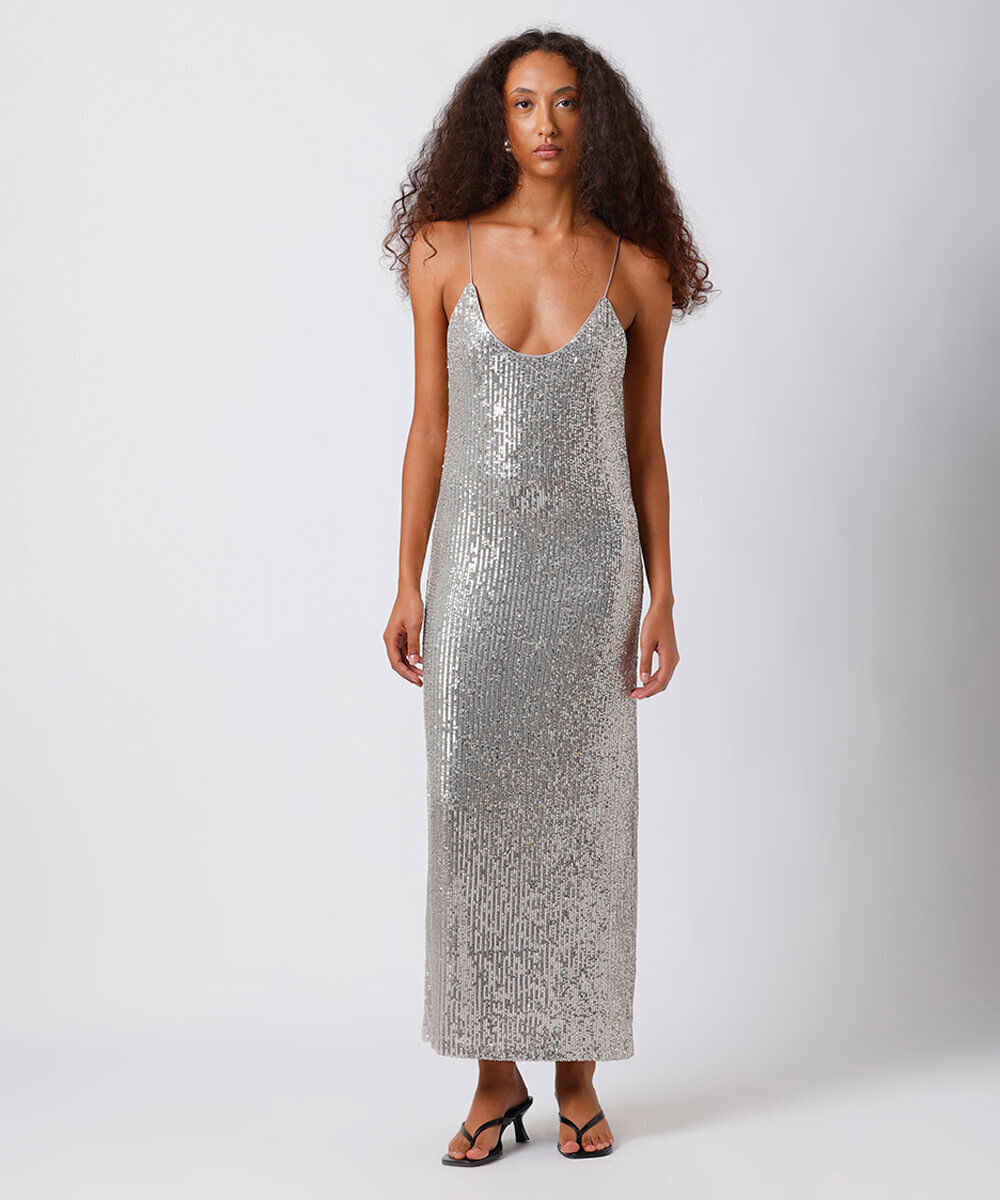 vestido midi alça fina feminino de paetê mindset prateado