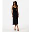 vestido midi alça fina feminino de tule franzido preto