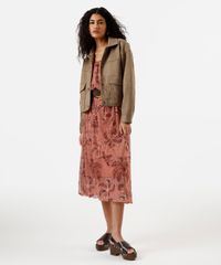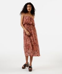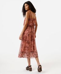 vestido midi balonê feminino de tule folhagens rosa