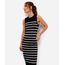 Vestido midi feminino confeccionado em tricot leve de viscose e poliamida com padronagem listrada. A peça tem modelagem reta e caimento confortavelmente ajustado ao corpo. O modelo tem decote redondo e alças largas.